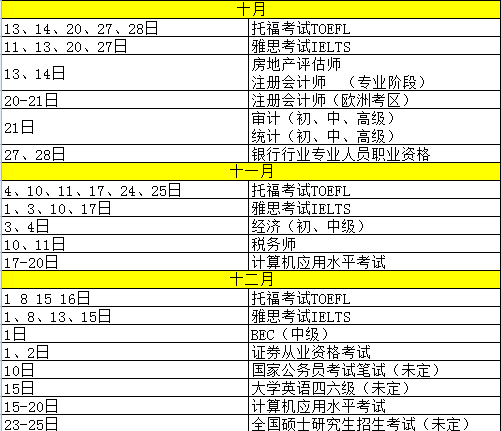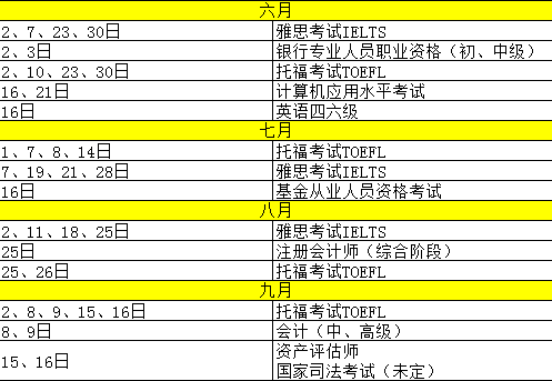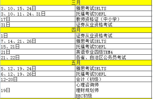 2018年考证时间表