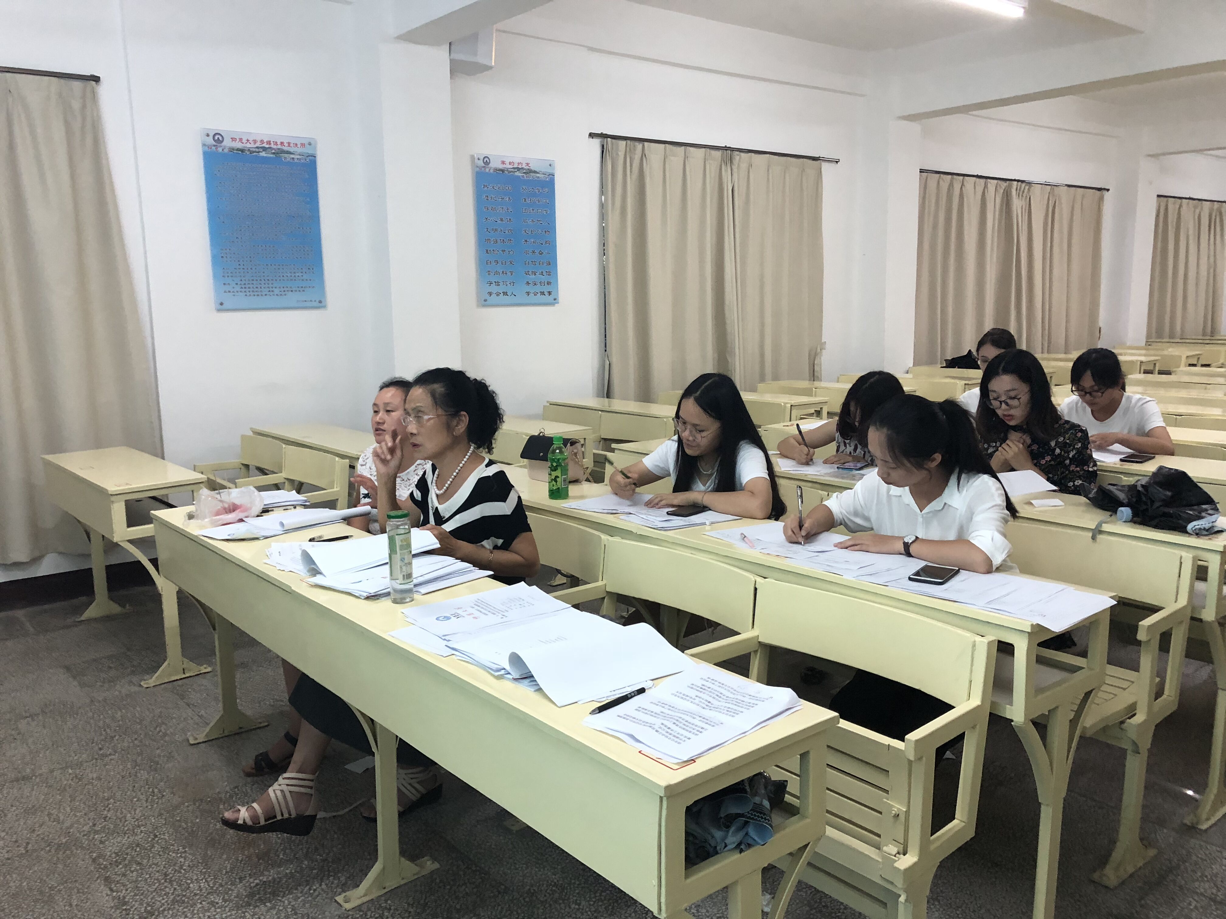 2018年06月25日、26日,beat365官方网站举行2018届毕业生毕业设计(论文)答辩。答辩工作由beat365官方网站院长何杨英主持,答辩委员会成员由beat365官方网站全体教师组成,并由16名学生代表担任答辩秘书。