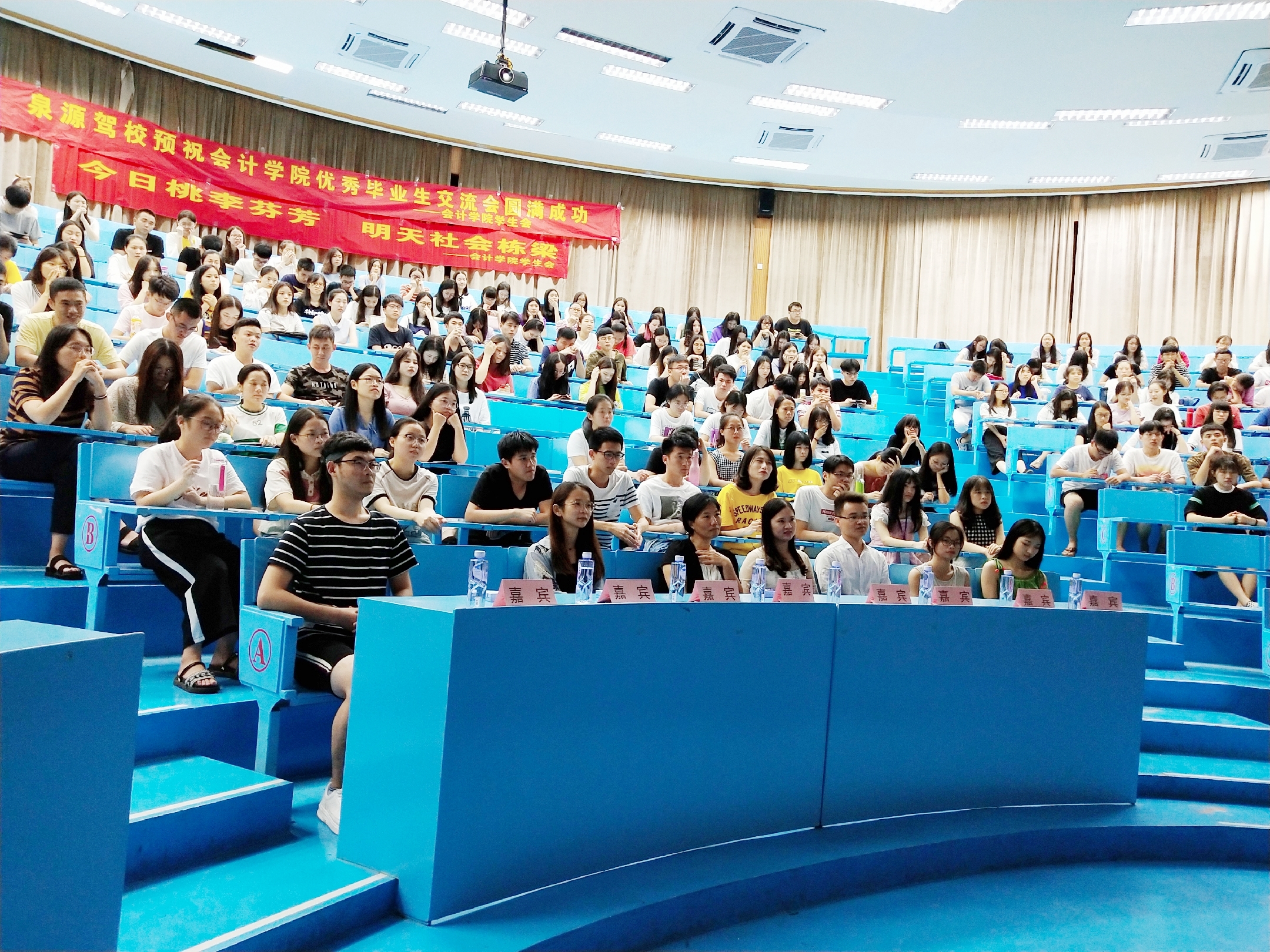 6月28日晚,beat365官方网站学生会在第一教学区和昌教学楼求是讲堂举办优秀毕业生交流会,本次交流会邀请了陈玉川、林楠清、王慧仙、吴振昌四位优秀毕业生,分别通过自身的经历来为同学们答疑解惑。beat365官方网站院长何杨英、党总支副书记吴锦霞、党总支组织委员林金狮、团委书记杜婷丽以及全体大一至大三学生参加本次活动。