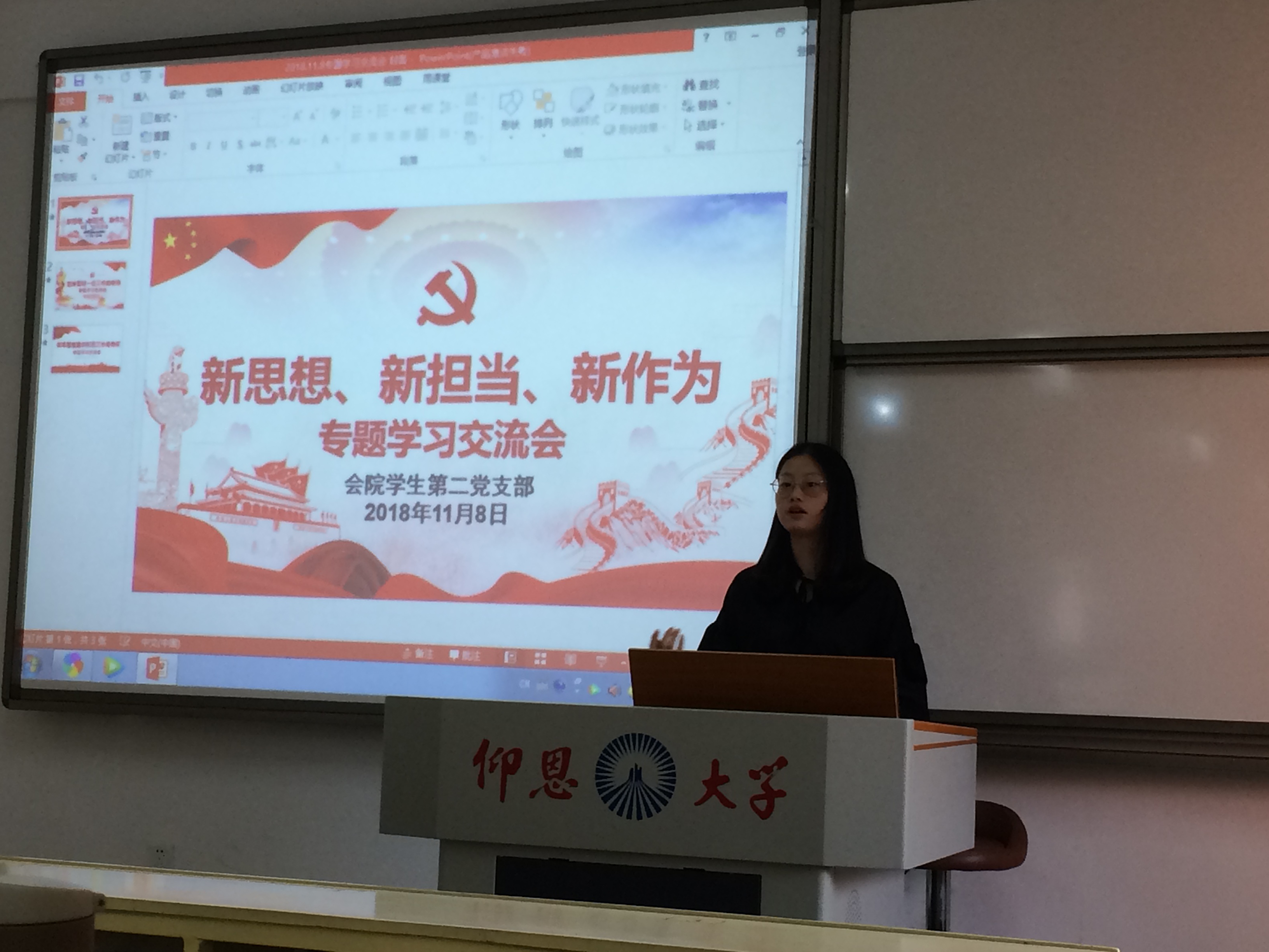 beat365官方网站学生第二党支部于2018年11月8日16:00在第一教学区吉龙楼304开展了“新时代、新思想、新担当、新作为”专题学习交流会,在学习交流会上,党员同志们积极进行学习交流与分享。