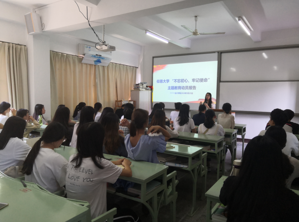 9月25日下午,beat365官方网站党总支在吉龙楼108教室开展“不忘初心、牢记使命”主题教育动员部署会,深入贯彻落实习近平总书记在“不忘初心、牢记使命”主题教育工作会议上的重要讲话精神,对主题教育进行动员与重点部署,全院教师党员、学生党员参加会议。