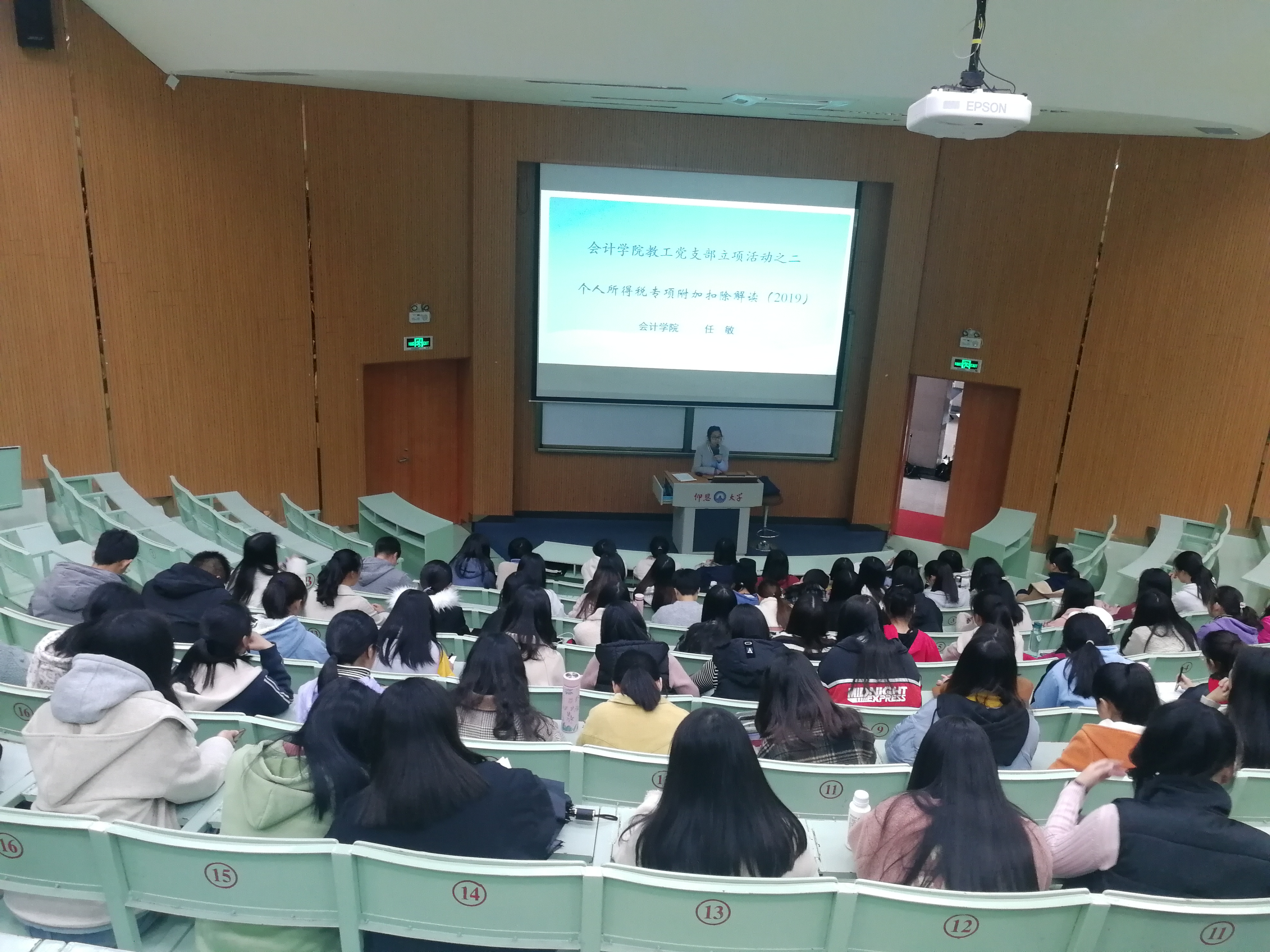 任老师通过举例,给党员积极分子们深入讲解了预扣预缴的计算过程。此次讲座,专业性强,具有很强的应用性,让党员积极分子们对个税专项附加扣除有了全面的学习了解以及准确把握。(beat365官方网站党总支/文图)
