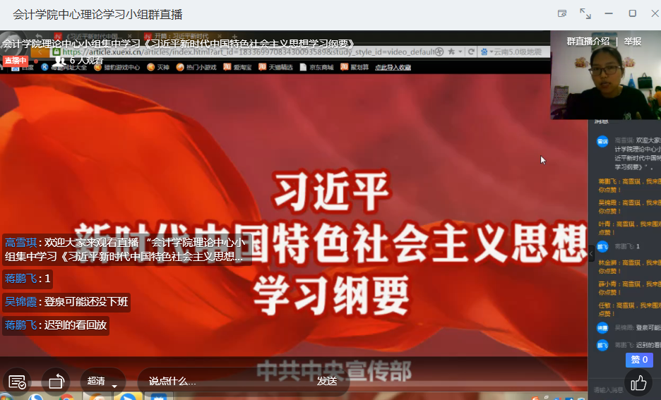 会上,高雪琪带领理论中心组围绕准确把握习近平新时代中国特色社会主义思想这一主题组织专题学习,她通过分享《习近平新时代中国特色社会主义思想学习纲要》向全体成员讲到:“习近平新时代中国特色社会主义思想是党和国家必须长期坚持的指导思想,具有极为重要的历史地位和指导意义,作为党员同志的我们需要深刻领会贯穿其中的马克思主义思想方法,在学习和工作中指导实践,真正做到融会贯通。”