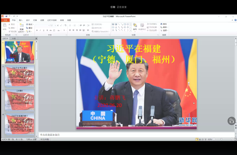 6月20日晚,beat365官方网站理论学习中心组召开线上学习研讨会,进一步深入学习《习近平在厦门》《习近平在宁德》《习近平在福州》系列采访实录,会议由会计学系主任蒋鹏飞主持。