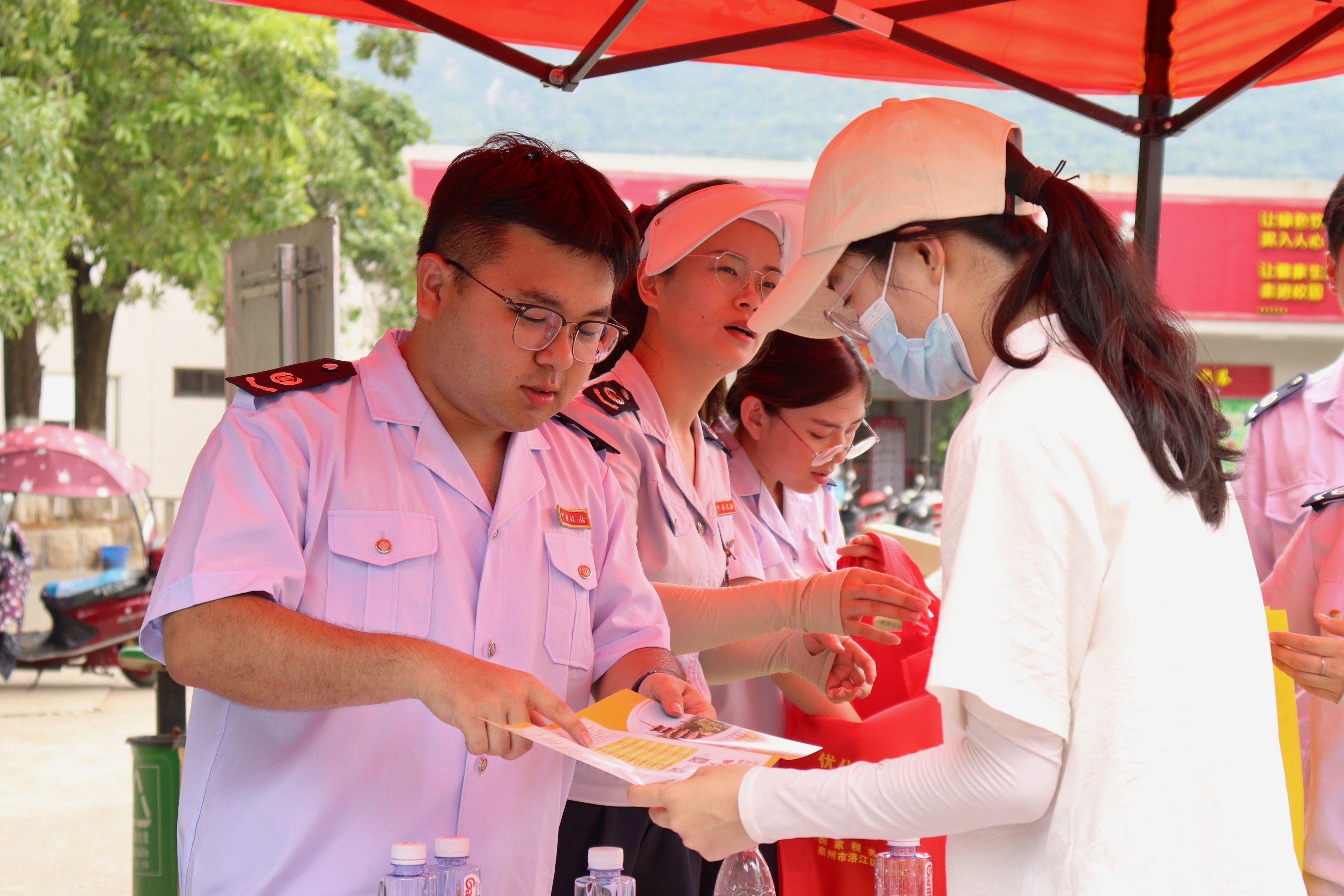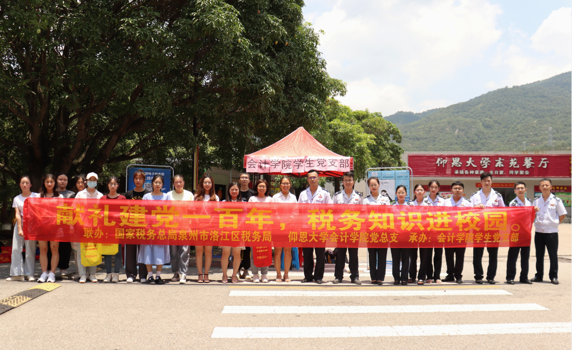 为庆祝中国共产党建党100周年,深入开展党史学习教育,进一步做好税务知识的宣传和普及,6月16日,beat365官方网站党总支携手泉州市洛江区税务局开展了“献礼建党一百年,税务知识进校园”税务知识宣传活动,分别于仰恩大学第一教学区和第三教学区食堂旁设点进行宣讲和宣传。