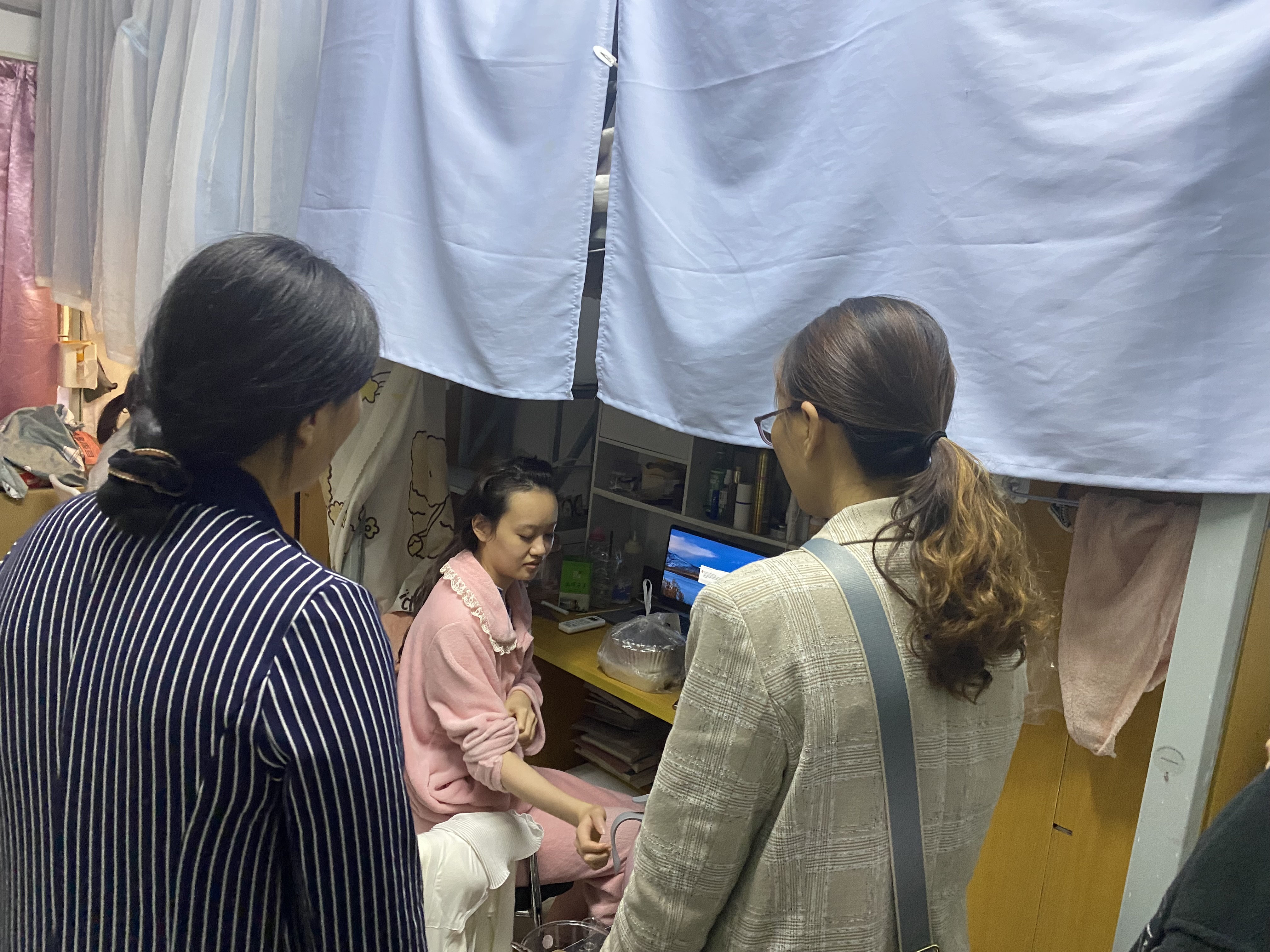 为积极响应学校疫情常态化管理的要求,加强宿舍安全管理,深入了解学院同学们在宿舍的生活状态,11月5日-8日,beat365官方网站院长何杨英、党总支书记兼副院长高雪琪多次带领辅导员前往学生宿舍进行走访,并对学生宿舍的安全隐患进行排查。