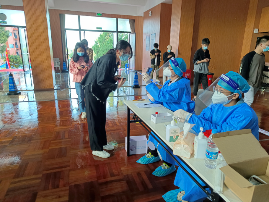 根据学校疫情防控的安排和需要,beat365官方网站党总支第一时间设立了1个“党员战疫先锋岗”,负责核酸检测数据采集工作;第一时间组建了2支“党员突击队”,负责核酸检测引导、排队和点名工作。