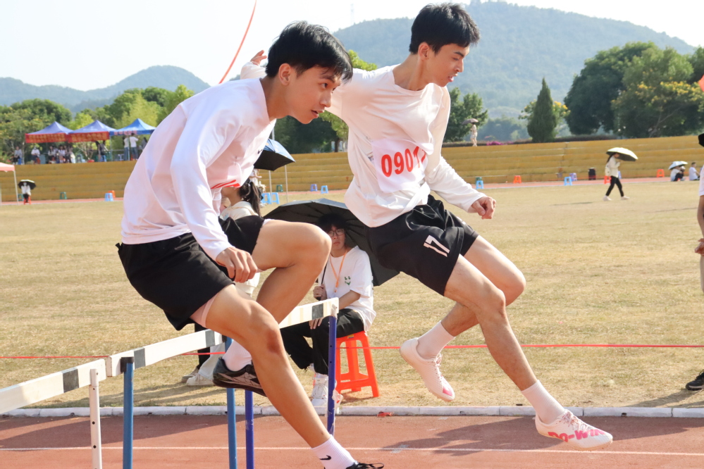 枪声响起,“预备起跑”,赛场上挡不住的是健儿们如火般的气势。英雄舍我其谁,胜利当仁不让,声声誓言浸透着健儿们的昂扬斗志。在男子100米跨栏的跑道上,杨思琦同学挥洒着汗水,跨越一个又一个的“障碍”,向着终点冲刺。他仿佛不知疲惫,心中只有一个信念——终点。不为鲜花的围绕,不为刹那的荣耀,只有执着的信念,化作不停的奔跑,最终他收获了100米跨栏第二。