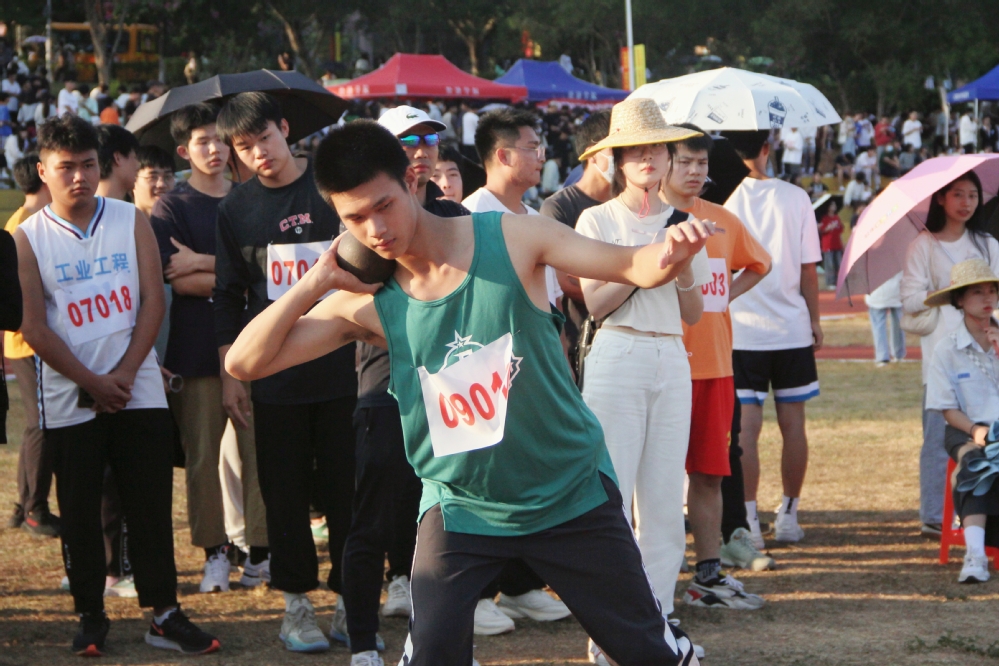 温暖的阳光洒在赛场上,女子标枪预决赛开始了。赛场上,一道道优美的弧线轻盈地划过天空,健儿们用手中的标枪向距离的极限发起一轮又一轮的挑战。 瞄准、发力、抛出,将力量与技巧完美融合,寄托着希望,如同利箭,向更远的地方飞去。最终,财务管理系的王欣荧同学夺得桂冠!