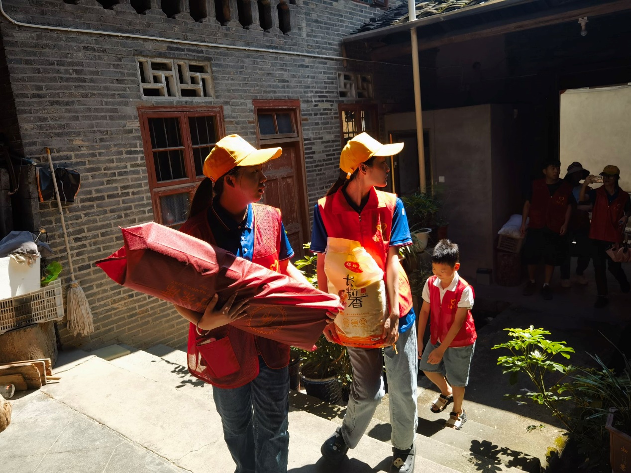队员们抵达村落后,迅速开始实践活动。志愿者服务队和队员们一起为老人们送来了粮油、草席等慰问品并得到了老人们的热烈欢迎。为给老人们提供一个更加干净舒适的生活环境,团队成员主动帮忙擦拭玻璃和门窗上的浮灰,清洁房间和走廊的地板。为了进一步拉近与老人们的距离,团队成员主动和老人们交流谈心,仔细询问老人们的身体状况,了解老人们对日常生活的需求,听老人们讲述他们的年轻岁月,一个个细微的举动,一句句亲切的家常,营造了温馨和谐的氛围。
