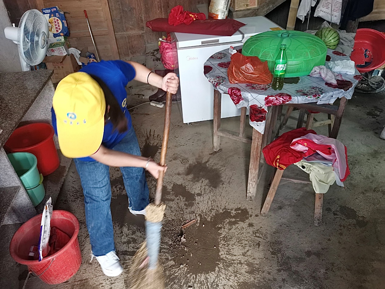 实践队员为当地特困老人打扫卫生
