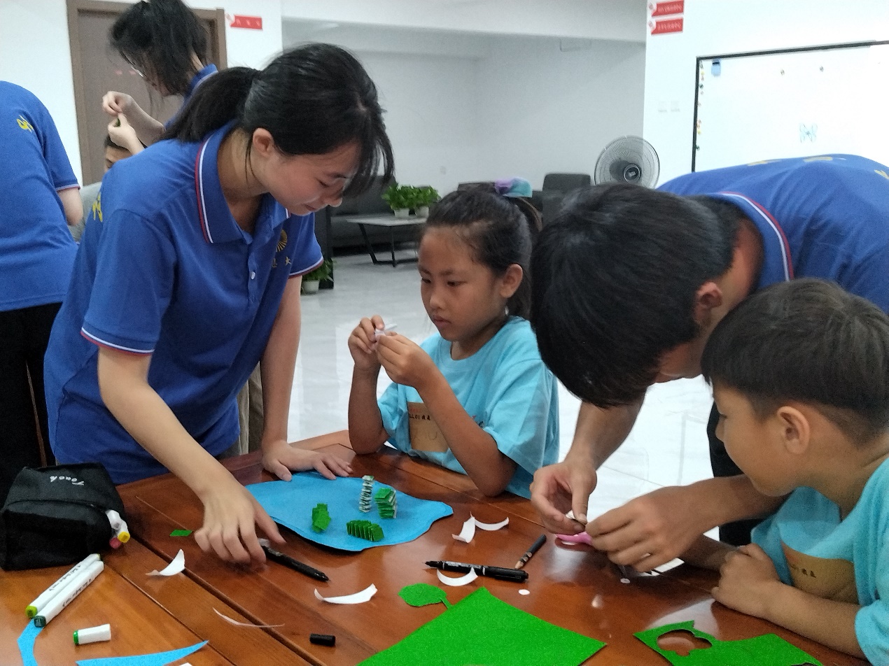 实践队员与小朋友一起做手工