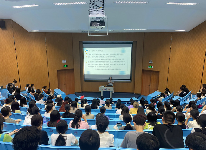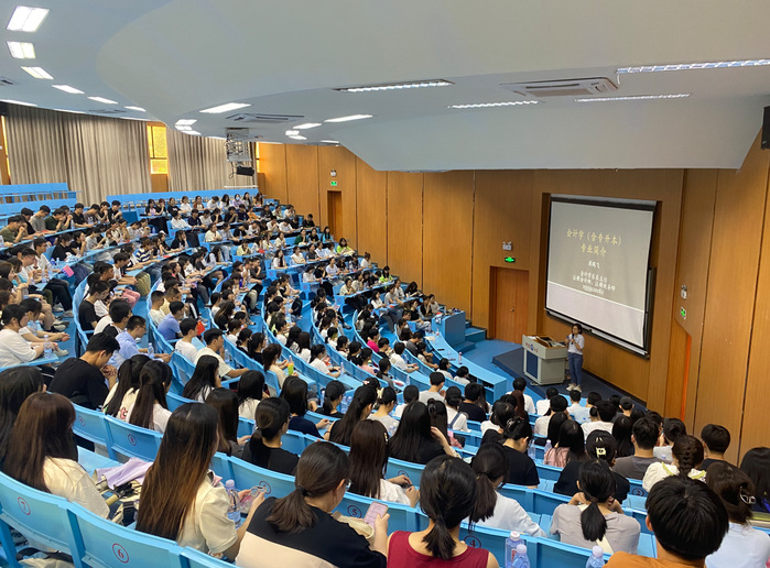 讲座按专业划分为上午会计学专业、下午财务管理专业两场。在两场讲座中,任敏老师都先向新生们大致讲解了本次专业教育的开展目的,接着由会计学系主任蒋鹏飞、财务管理系叶青老师分别向各自专业的新生介绍了会计学、财务管理专业的课程及学分要求,强调学院对于学生的学习及个人发展十分重视,鼓励学生进行多方面探索。