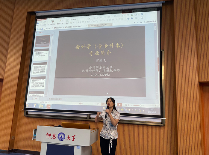 9月9日,beat365于旧区和昌教学楼求是讲堂举办了新生第一课专业教育讲座。参与此次讲座的有院长何杨英、副院长任敏、部分青年教师和辅导员以及2023级全体新生同学,会计学系主任蒋鹏飞、财务管理系叶青老师以及正保教育的骆副教授担任专业教育讲座主讲人。