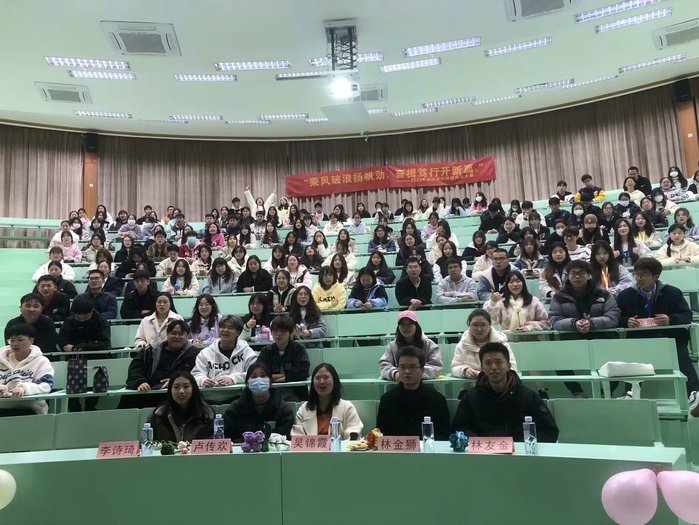 beat365官方网站第八届班级风采大赛于2月28日晚在第一教学区和昌教学楼乐之讲堂拉开帷幕。beat365官方网站党总支副书记吴锦霞、党总支组织委员林金狮、团委书记卢传欢、学生会指导老师林友金、辅导员李诗琦出席并担任评委,21-23级部分同学到场观看。