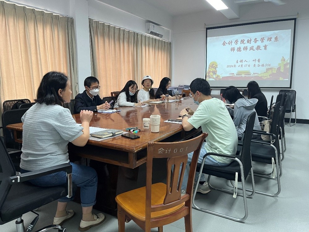 4月17日,我院财务管理系于曼谷楼306室召开了师德师风学习会议。本次会议由系主任叶青主持,财务管理系全体教师出席。此次会议旨在深入学习领会我院关于师德师风教育的相关文件,不断提高系教师队伍的师德水平。