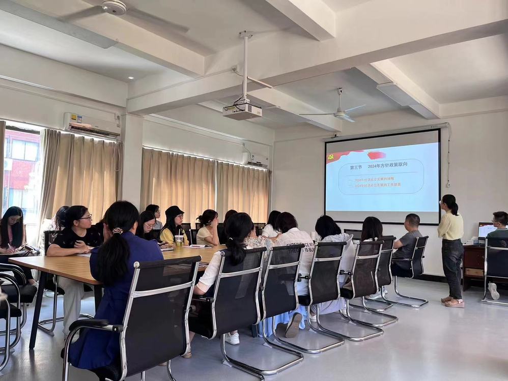 学习会上,林秋花老师结合我国基本国情,阐述了党的基本路线,回顾了去年我国方针政策取得的成效,介绍了今年经济社会发展的预期和经济社会发展的工作部署。我国具有显著的制度优势、超大规模市场的需求优势、产业体系完备的供给优势和高素质劳动者众多的人才优势,科技创新能力在持续提升。通过学习,在座教师对党和国家的路线方针政策有了更深刻的了解和认识,这有利于教师将政治理论学习与业务能力提升相结合,进一步激发教师政治理论学习的积极性和主动性,不断增强学习的针对性和实效性。