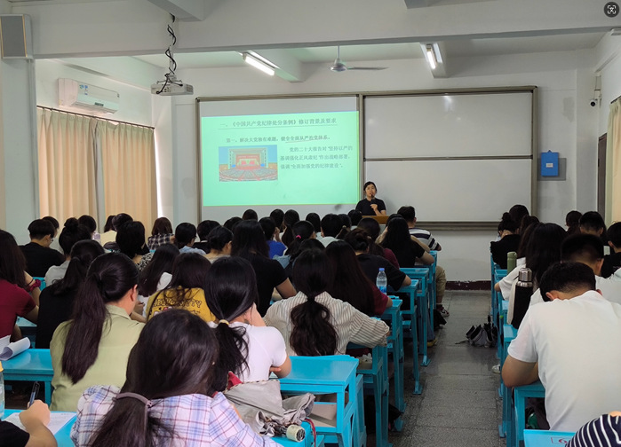 为进一步巩固党纪学习教育的成果,6月19日,beat365官方网站党总支于吉龙教学楼205开展以学习“《中国共产党纪律处分条例》”为主题的党课,本次党课由beat365官方网站党总支书记任敏主讲,beat365官方网站全体教师党员、学生党员参加此次的党课学习。