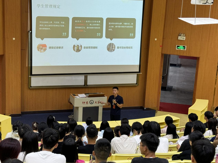 首先,林友金老师为新生们阐释了学校的各项规章制度。他强调,作为新时代的大学生,必须以高标准、严要求自我约束,严格遵守学校规章制度,不得逾越制度及法律的界限。接着,林友金老师引用众多生动案例和真实统计数据,向新生们揭示了诈骗手段的多样性和潜在风险。他提醒新生需保持警觉,提高自我保护意识,避免陷入骗局。最后,林友金老师对《仰恩大学综合测评实施办法》及奖学金评选办法进行解读。他指出,这些政策是激励学生勤奋学习、全面发展的关键措施,并鼓励新生们确立清晰的学习目标和发展方向,积极参与学术活动和社会实践。