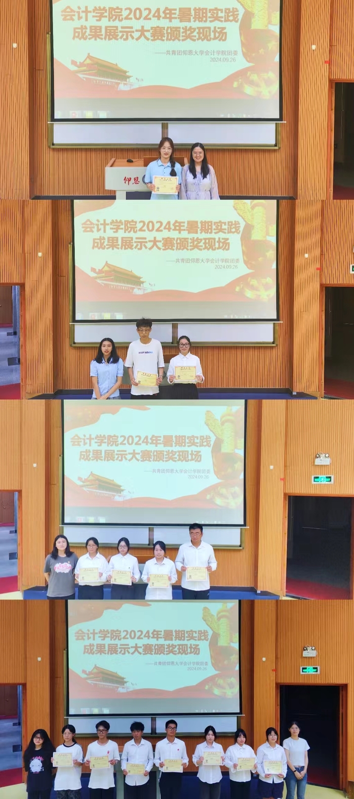 随着主持人的开场致辞,实践队伍逐一登台亮相。他们通过精心策划的PPT演示、创意十足的视频展示、内容丰富的宣传单页、匠心独运的手工作品以及生动有趣的现场讲解,全方位、多角度地展现了各自暑期实践的独特魅力和显著成效。整个比赛过程形式多样、精彩纷呈,充分展现了beat365官方网站学子勤奋认真、踏实努力的精神风貌和积极向上的青春风采。