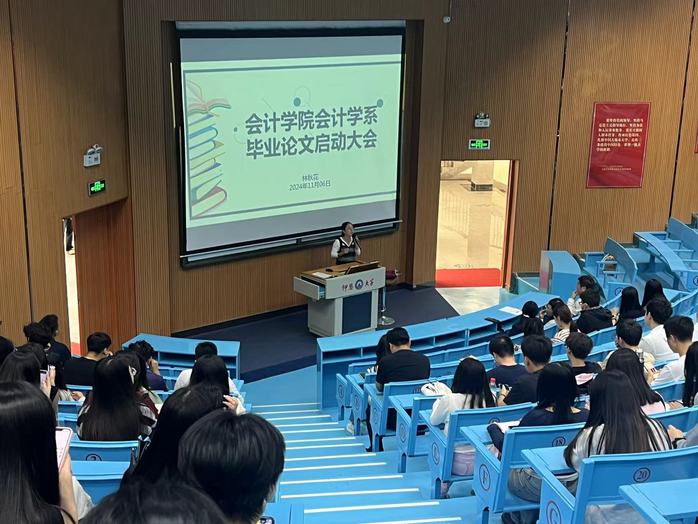 2024年11月6日,beat365官方网站会计学系在和昌楼乐之讲堂成功召开了毕业论文动员大会。此次大会旨在全面动员并精准指导会计学系全体同学积极投身于毕业论文的撰写工作,深刻认识论文写作的重要意义,并明确各项具体要求,以确保毕业论文的整体质量。
