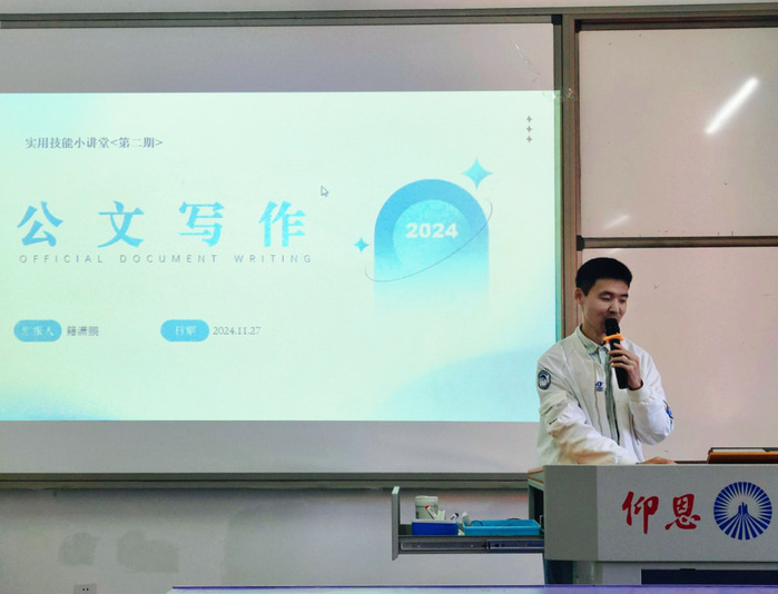 11月27日,在吉龙楼405举办了公文写作小讲堂,籍潇鹏老师详细阐述了公文写作的基本规范、格式要求以及常用文种等,为同学们今后在各类公文处理工作中奠定了坚实基础。