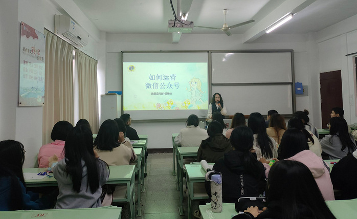 12月12日,微信公众号运营小讲堂在吉龙楼103举办侯依依老师担任主讲,内容涉及公众号定位、内容创作以及排版技巧等方面,助力同学们在新媒体运营领域拓展技能。