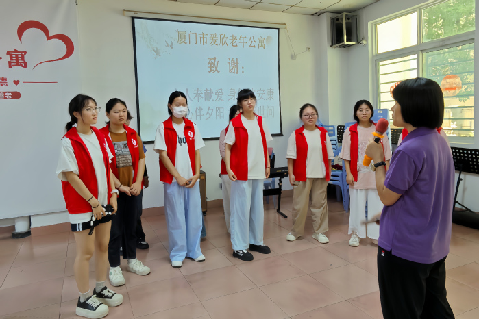 7月11日,beat365官方网站“微光筑梦教育队”暑期实践队在厦门市集美区爱欣老年公寓举办送别活动,与老人们互动共叙情谊。