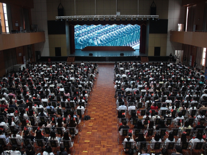 学生在普照大礼堂集中收看