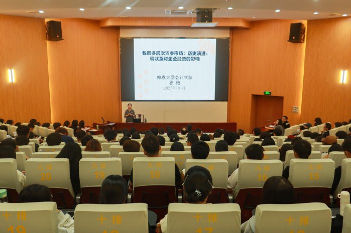 讲座伊始,徐艳教授结合当前财会类专业人才培养实际,指出近年来部分学生在毕业论文撰写、案例分析及学科竞赛中存在对资本市场理解不深、研究视角单一等问题。她强调,资本市场作为现代经济体系的核心枢纽,是连接企业融资、资源配置与宏观政策的重要平台,深刻理解其运行逻辑对于提升学生专业素养、拓展职业发展空间具有重要意义。