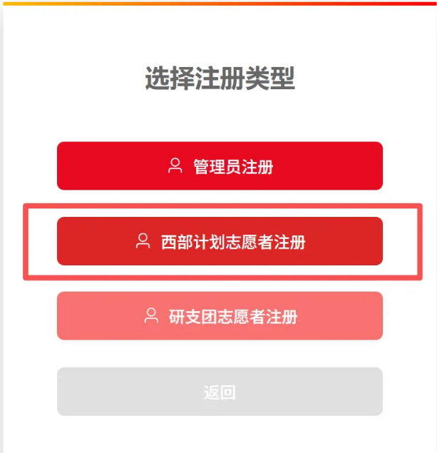 进入“西部计划信息系统”页面,点击左下角“账号注册”进入申请注册链接页面。