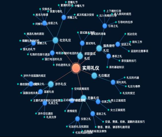 课程围绕航空服务人才岗位能力需求描画与构建课程知识图谱,设计了6大模块、16个教学任务、45个技能知识点(见图1),系统、科学、规范地介绍现代礼仪知识,为学生走上工作岗位打下坚实基础。